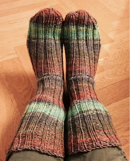 ...till ruggiga dagar! Tripp trapp och trull blir i alla fall inte kalla, med fötterna klädda i ull. Raggsockor i självrandat garn från Järbo, raggi.
